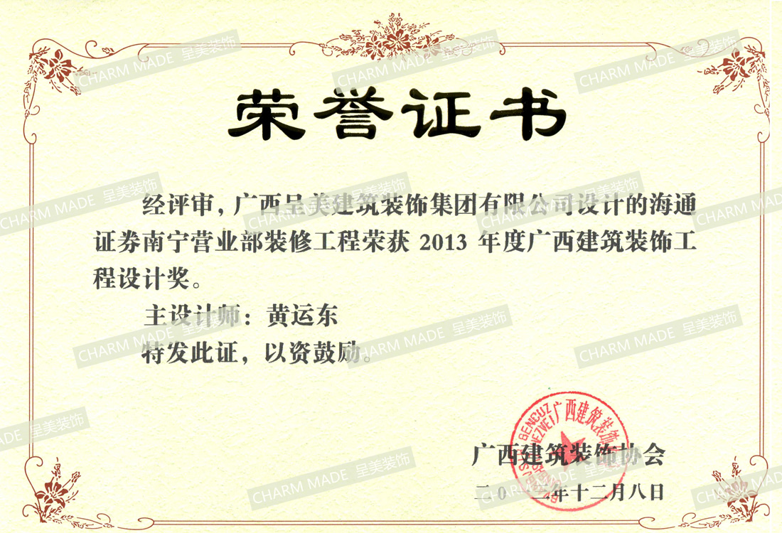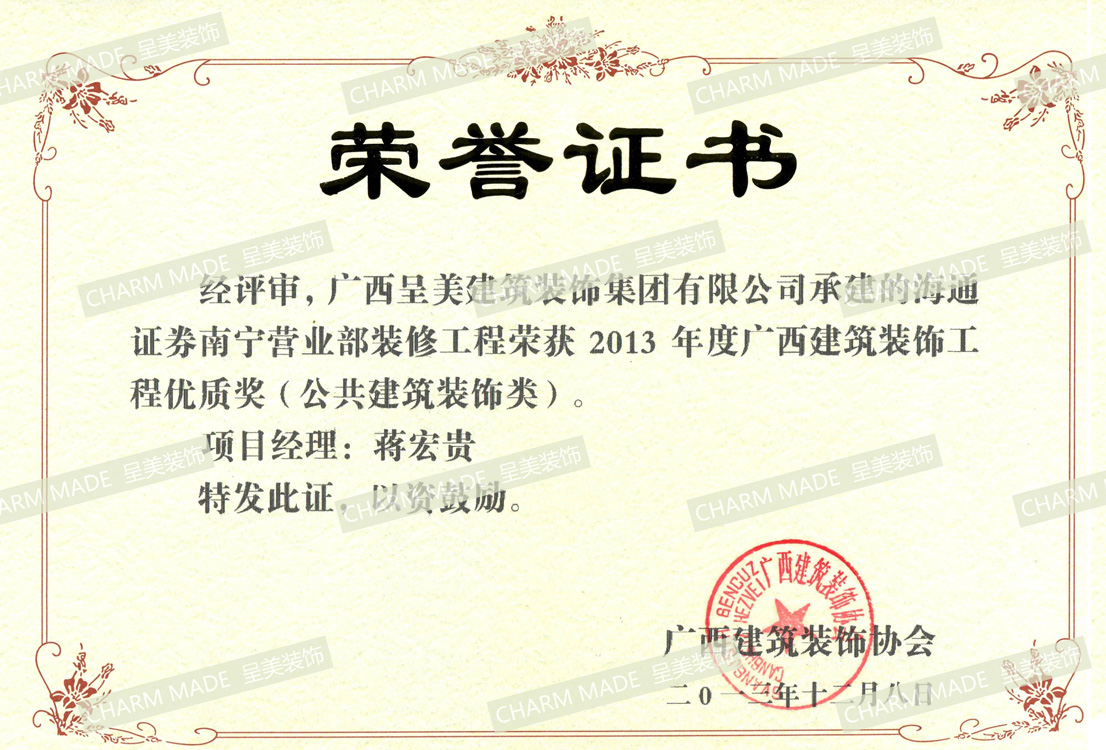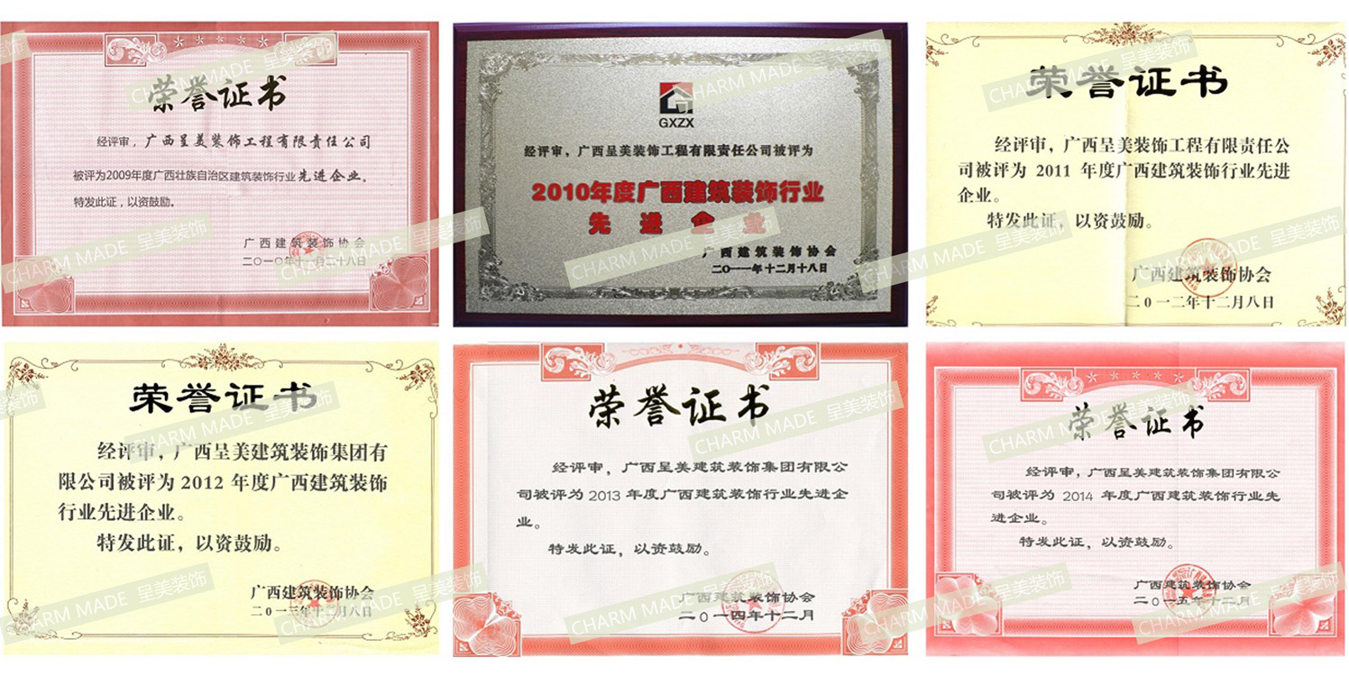 2009年~2014年 我司连续6年荣获 广西建筑装饰行业先进企业