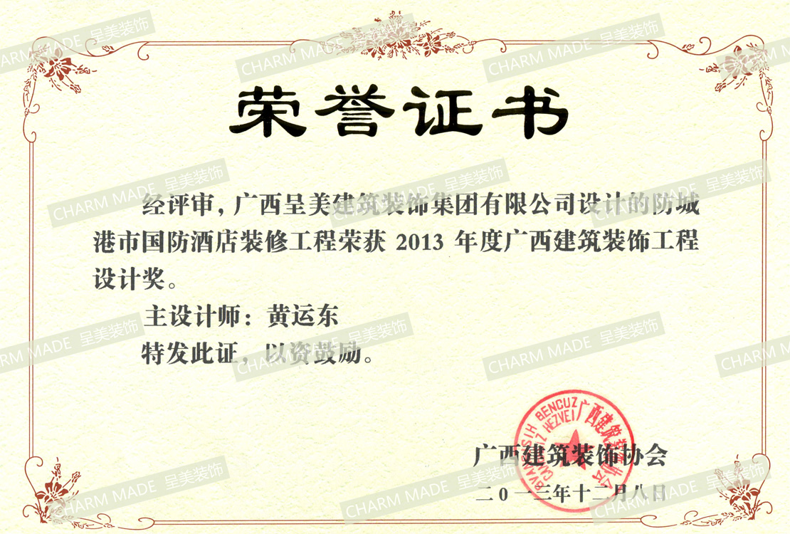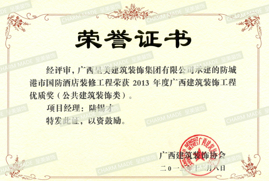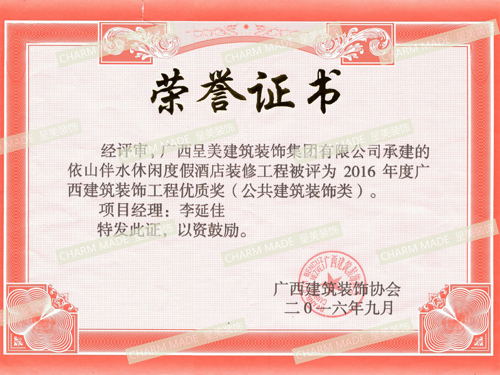 2016年度广西建筑装饰工程优质奖(依山伴水酒店项目)