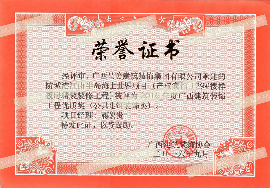 2016年度广西建筑装饰工程优质奖(海上世界项目)